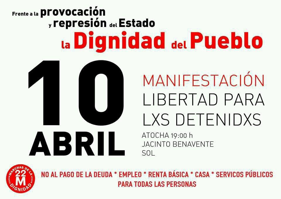 Jueves 10 de Abril, 19 H.-MADRID: LIBERTAD DETENID@S 22M