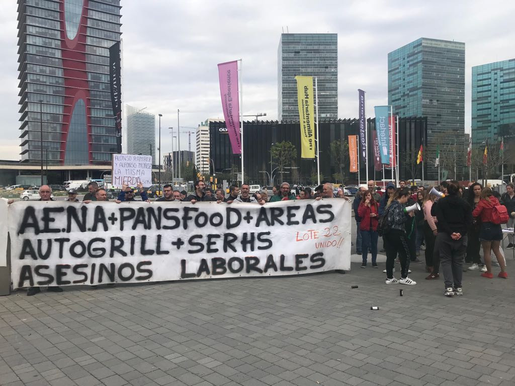 Este 16 de abril, coincidiendo con la inauguración del salón Alimentaria, un grupo de empleados se han desplazado hasta la Fira de Barcelona para hacer más visible su situación y que los empresarios del sector sepan lo que están viviendo y en las situaciones que trabajan.